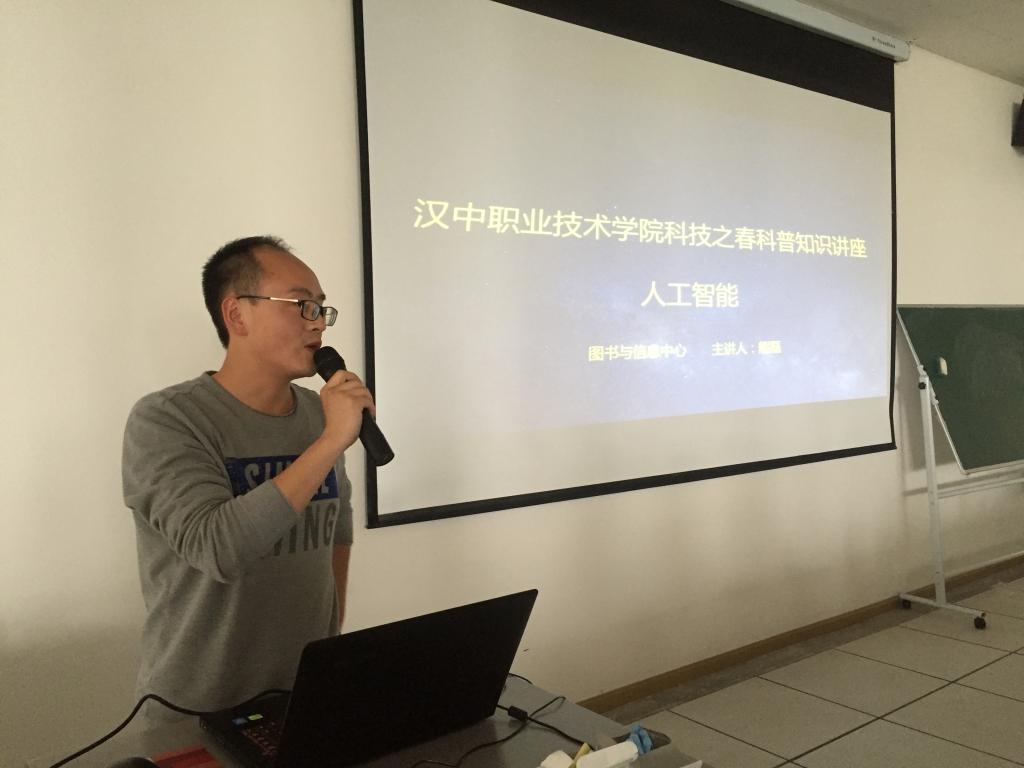 2017年4月13日下午,汉中职业技术学院图信中心熊磊老师在图书馆401室举办了以“人工智能科普知识”为主题的“科技之春”科普讲座,讲座由图信中心主任张利宏主持,参加讲座的有图信中心全体人员、医学系部分学生以及其它各系、部老师及学生二百余人。