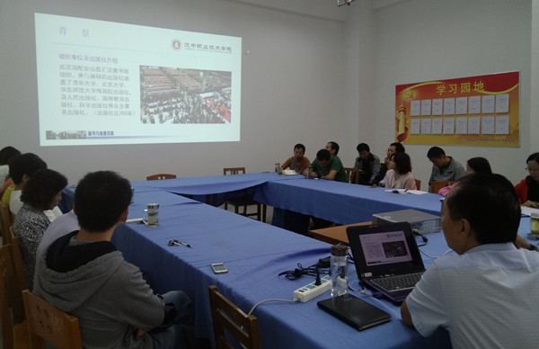 郝德春首先利用精美的PPT,图文并茂地对参加馆配新书订货会现场采书情况做了汇报,为大家展示了西安采购之行的收获。我院图书馆在本次现场采购会共选出新书2200余种,进一步丰富了馆藏。他详细介绍了此次现场采购图书的过程及原则方法,通过讲解,使大家对现场采购图书工作有了更深刻的认识和掌握。