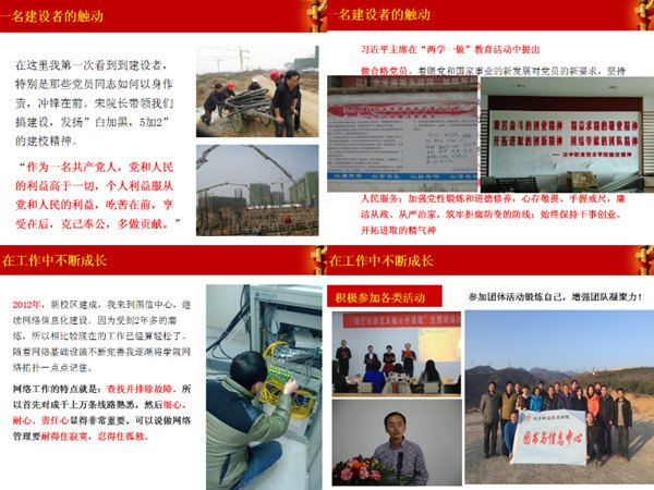 熊磊汇报了近几年的工作历程,交流了工作心得。特别是2010年参加新校区建设,亲眼目睹了建设者特别是党员同志如何以身作则,冲锋在前,院领导带领大家搞建设,发扬”白加黑,5加2”的建校精神的过程,很受触动,优秀党员的影响和感召,萌发要入党的想法和信念。到图信中心工作后,负责网络信息化建设,在网络基础设施建设完善过程中,逐渐将学院网络拓扑一点点记住,熟悉成千上万条线路,身边同事任劳任怨、不计得失、严以律己、以身作则的先锋精神始终激励着他的成长,促进了他的责任和担当。坚定了他积极进取、开拓创新、无私奉献、干好工作的信心和早日加入中国共产党的决心。在2016年,将按照学院“两学一做”学习教育总体安排和部署并结合中心开展的各项学习教育活动,不断加强理论学习,深入系统的学习党的十八大精神及习近平总书记系列重要讲话,努力提高理论素养,使与时俱进的理念根植于心,形成坚不可摧的“信念墙”。用党员的标准严格要求自己,力争取得更好的成绩,更大的进步。图信中心主任张利宏对熊磊几年的工作给予了高度肯定,号召大家在“两学一做”学习教育中找准自己工作的切入点和结合点,身体力行,不断完善和提升自己,以党员的标准严格要求自己,把图信中心为师生的服务工作做得更好。(图书与信息中心 罗辉)编辑/李力、余姣