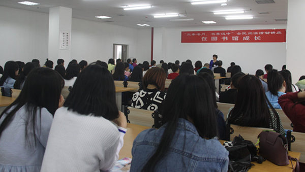 2016年5月25日下午,汉中职业技术学院图书与信息中心二楼阅览室座无虚席,图书与信息中心全体人员以及来自农林系、教育系、护理系、土建系的学生代表们正在认真地聆听汉中职院校友、汉台区委组织部高视惠老师的《在图书馆成长》专题讲座。讲座由图信中心直属党支部书记李小玲主持。