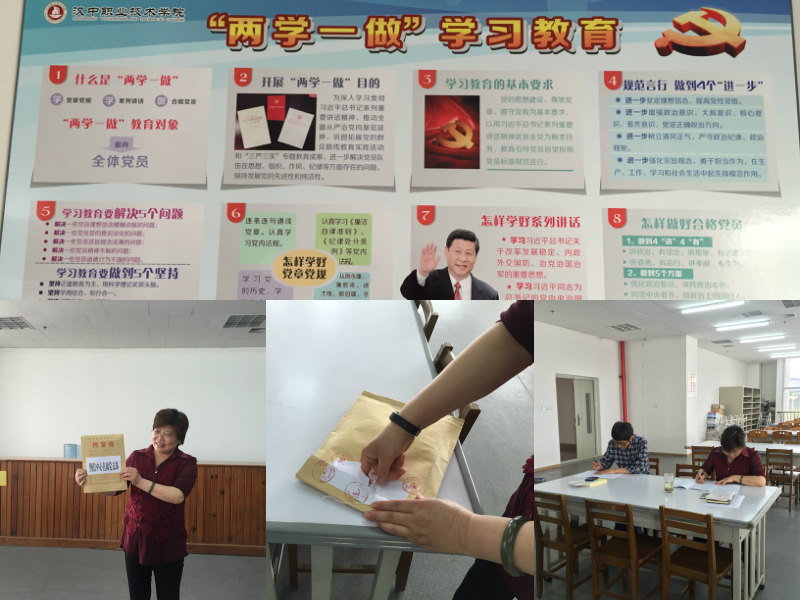 2016年5月4日下午,汉中职业技术学院图信中心直属党支部组织全体党员干部参加了以党章、党规党纪以及习近平总书记系列重要讲话精神为主要内容的“双考双评一诺”摸底考试,摸底考查全体党员干部对新修订的《中国共产党章程》、《准则》和《条例》的学习掌握情况。