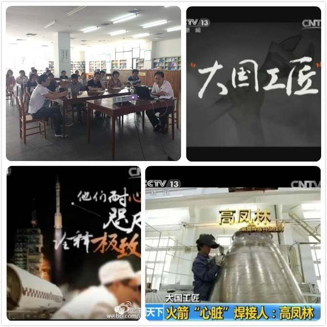 6月17日下午,图书与信息中心全体人员在图书馆二楼阅览室集中观看了2015年“五一”开始在央视新闻推出的八集系列节目《大国工匠》,8位不同岗位劳动者,用他们的灵巧双手,匠心筑梦的故事,深深地感动着每个人,引发热议。