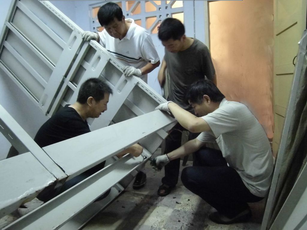 铁质书架的拆解工作,分别在师范校区、医学校区、财经校区进行。全体图书与信息中心的所有男教职员工参与拆卸书架工作。