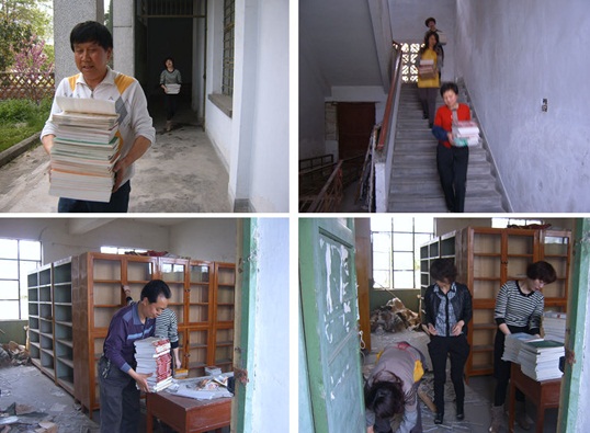 |  2011年4月14日,风和日丽,阳光明媚。农林校区图书信息科全体老师共七人参加义务劳动,帮忙给土建系誊出办公用房,将图书馆三楼原培训部书库里的二千余册图书搬运到图书馆一楼书库。由于长期放置,图书上全是厚厚的灰尘,而且没有任何搬运工具,但所有老师发扬不怕脏不怕累的精神,个别老师身体不好也积极参加,徒手一趟趟的往返于上下三楼之间。在大家的齐心协力下,经过几个小时的奋战将2000余册图书搬到图书一楼书库归置整齐。