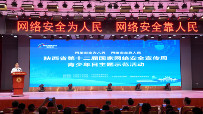 9月15日下午,由共青团陕西省委、中共陕西省委网信办共同主办,团市委、市委网信办、汉中职业技术学院、省青年新媒体协会共同承办的陕西省第十二届国家网络安全宣传周青少年日主题示范活动在汉中职院行政楼多功能厅成功举行。团省委副书记李臻,省委网信办安技处副处长王伟,团汉中市委书记周密,汉中市委网信办副主任梁文兴,汉中职院党委书记李志刚,党委副书记袁力,副院长孟爱民,党委委员、副院长张仕锋出席活动,学院党政办、组宣部、学工部(处)、保卫处、团委、图信中心负责人,各二级学院党总支书记以及团员青年代表600余人现场参与活动。